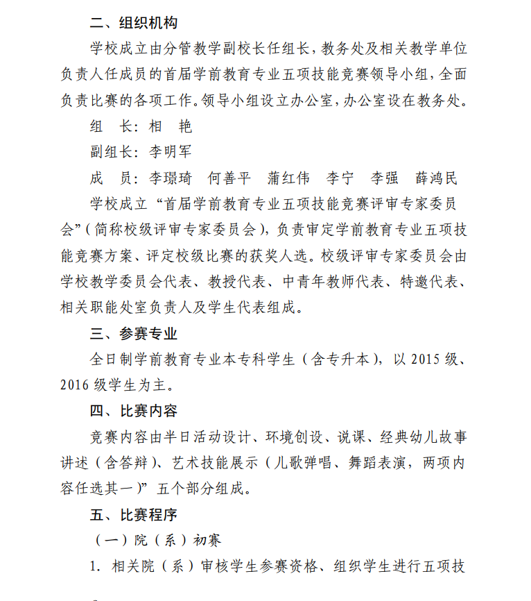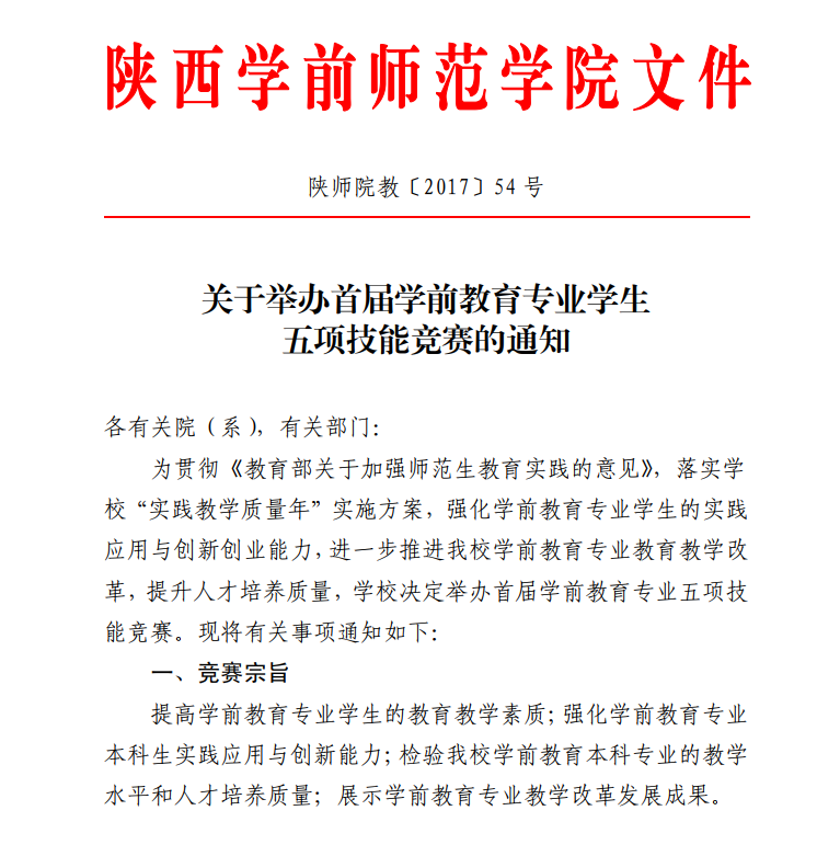 关于举办首届学前教育专业学生五项技能竞赛的通知