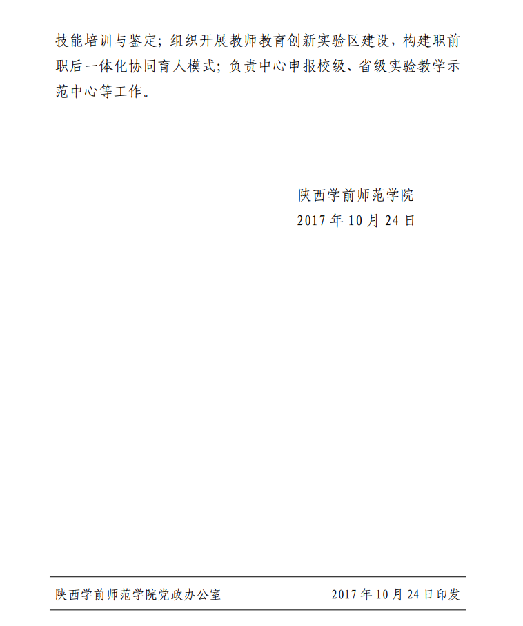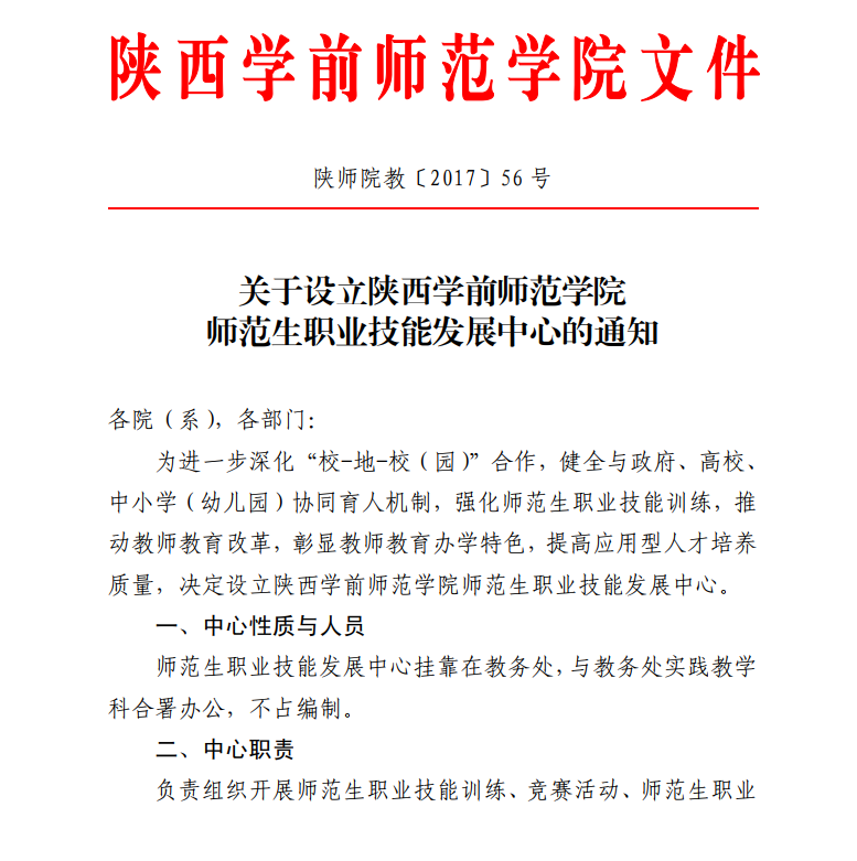 关于设立陕西学前师范学院师范生职业技能发展中心的通知