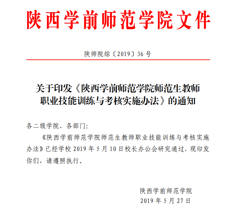 关于印发《陕西学前师范学院师范生教师职业技能训练与考核实施办法》的通知