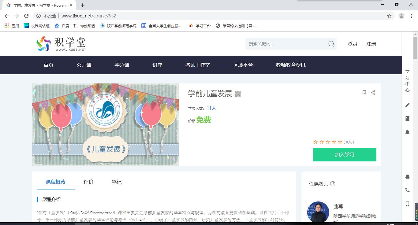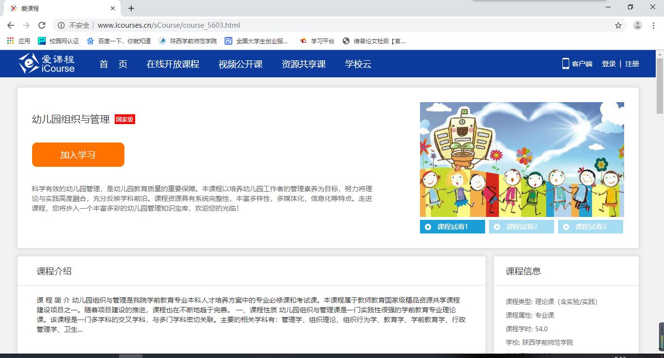 陕西学前师范学院在线开放课程网址链接一览表